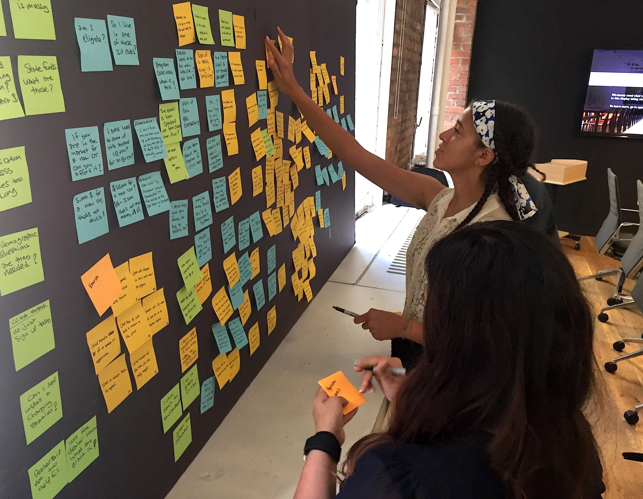Our client-partner, Vanessa, affinity mapping alongside our team